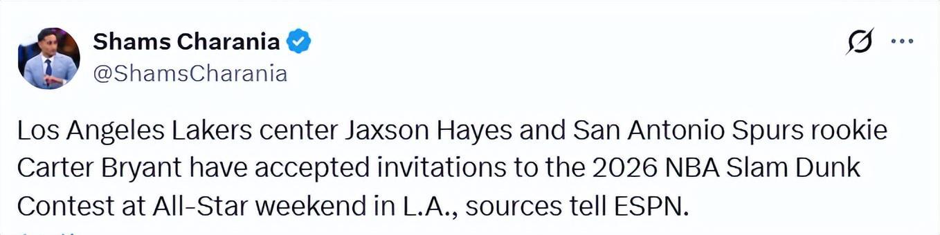 近年来,NBA扣篮大赛的光彩已黯淡不少。北京时间1月30日,据名记Shams报道,今年四位参赛选手名单中的两人已经确定,他们分别是湖人中锋海斯和马刺侧翼卡特-布莱恩特。此前,三届扣篮王麦克朗已宣布不会参赛。海斯身高2米13,扣篮时自带“高个球员特效”,效果好坏姑且不论。不久前他还在湖人队的一场常规赛中完成过一记胯下扣篮,显然拥有一套专业级别的扣篮动作库。海耶...